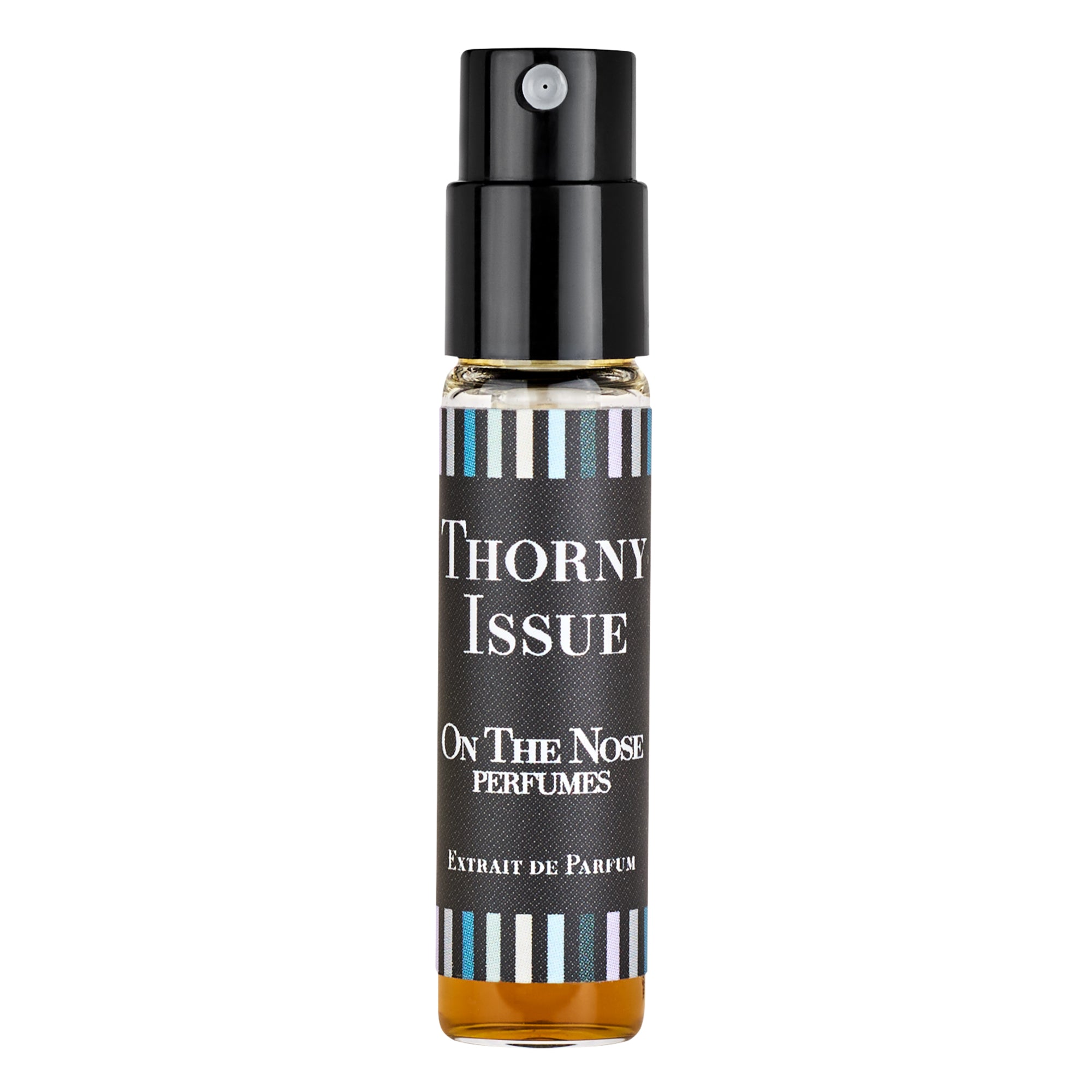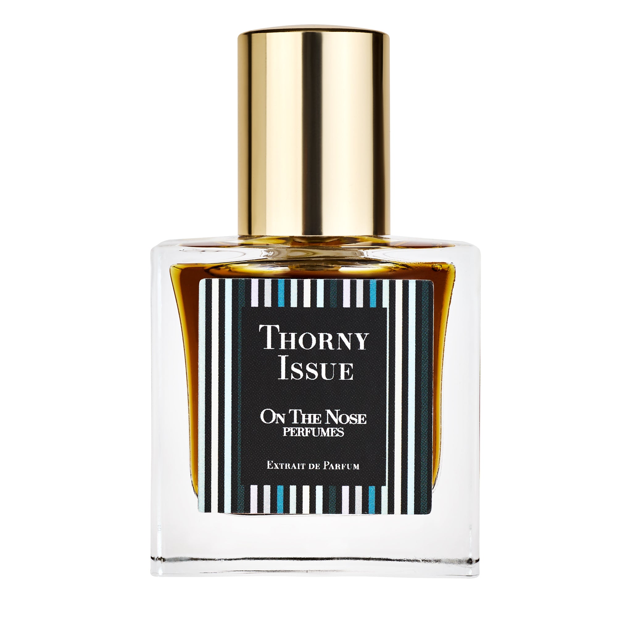 Thorny Issue is a rose fragrance that explores the whole rose, from the juicy, honeyed petals, to the greenness of the leaves and stems, to the leathery thorns.